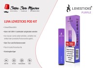 Das LUVA LOVESTICKS Pod Kit ist eine wiederaufladbare E-Zigarette/E-Shisha mit integriertem Akku. In den Pods befindet sich das Liquid in dem gewünschten Aroma, welches einfach in die LUVA LOVESTICK BASISGERÄT gesteckt wird.